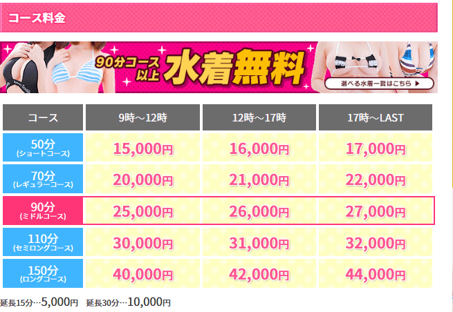 40分14,000円のコースもありますが、こちらは下着+ハンドでのサービスなのでヘルスプレイとは少々異なるので、注意してください。