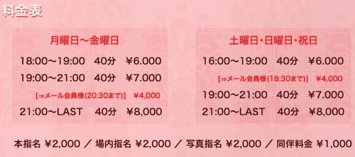 料金は通常フリー40分12,000円からですが、日祝限定で30分3,900円から遊べる新規限定のサンキュークーポンがお得。
