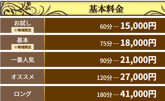 | 基本料金 | 60分 15,000円~ |