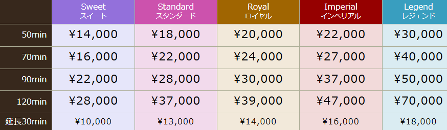 | 基本料金 | 50分 14,000円~ |