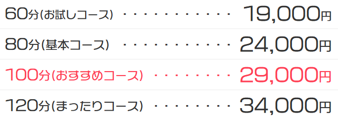 | 基本料金 | 60分 19,000円~ |