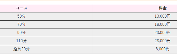 | 基本料金 | 45分 13,000円~ |