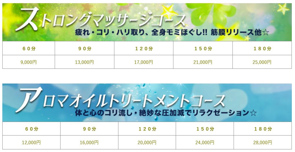 このほか、精力の回復なら「ヴィーブセラピーコース」といったコースも確認できました。
