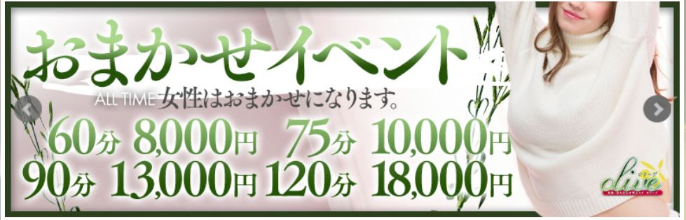 60分でさらに安く遊べる新規限定イベントをはじめ、おまかせイベント、前立腺性感イベントなどがあり、詳細の確認は公式HPをチェックするかスタッフまで。