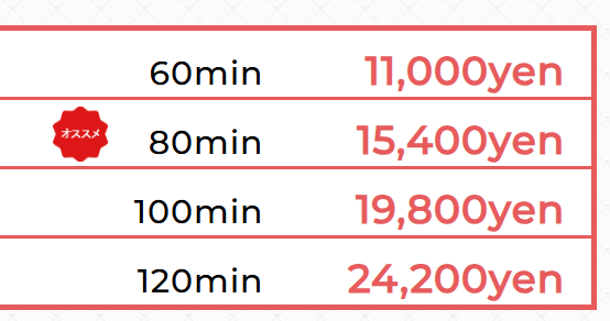 | 基本料金 | 60分 11,000円〜 |