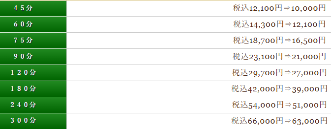 | 基本料金 | 45分 12,100円〜 |