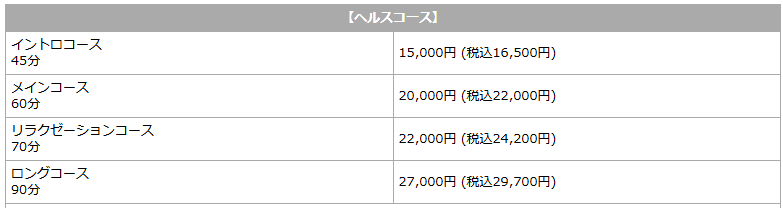 メインコースの料金はマットかベッドを選択する45分15,000円~、マットもベッドも楽しむコースが75分25,000円~