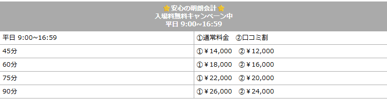 名古屋のファッションヘルス相場が50~60分で14,000円~といわれているので、口コミ割を利用できれば十分に割安です。