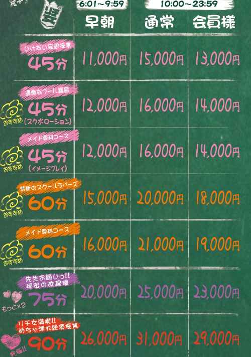 さらに、会員になると通常の時間帯でも45分13,000円で遊べます。