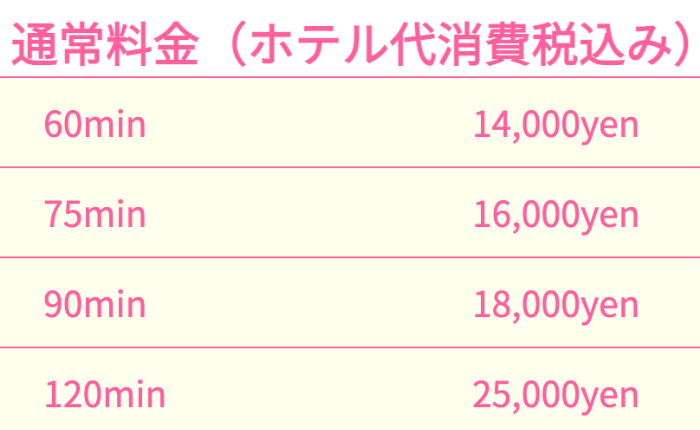 | 基本料金 | 60分 14,000円~ |