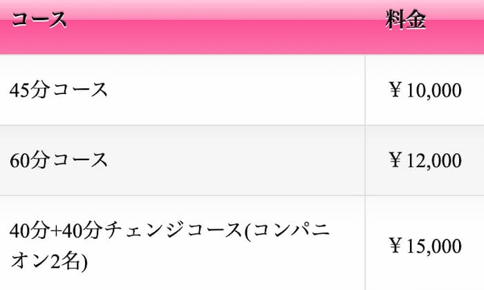 コースは45分10,000円からで、キャストはお店にお任せのフリーコースです。