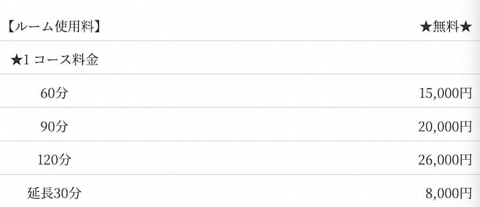 キャストは星1〜星5までランク分けされており、星1コース60分15,000円から遊ぶことが可能。