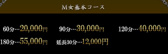 用意されたコースは2種類で、M女基本コースが60分20,000円から、人妻M女基本コースが60分15,000円からです。