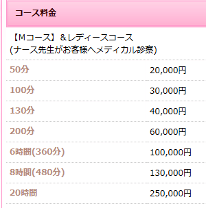 Mコースは50分20,000円からで、女医のキャストに診察されます。