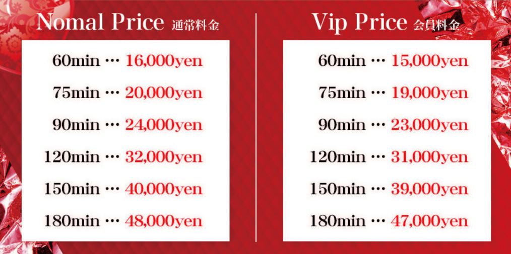 | 基本料金 | 60分 15,000円~ |