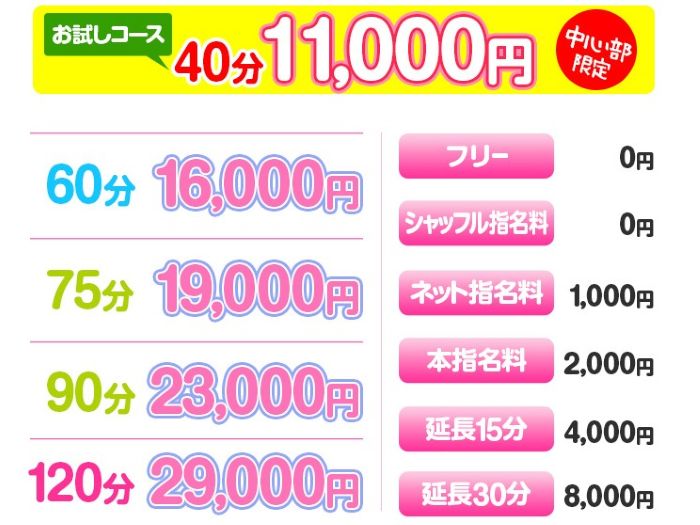 料金は40分11,000円〜と明確で、指名料などの追加料金もわかりやすいシステムになっています。