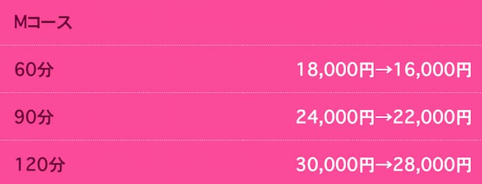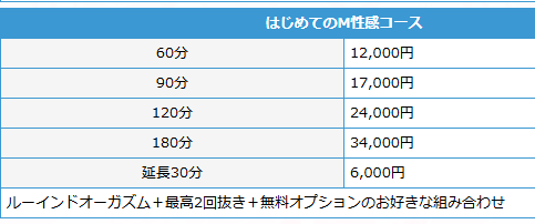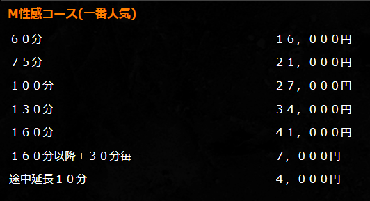 | 基本料金 | 60分 16,000円~(M性感コース) |
