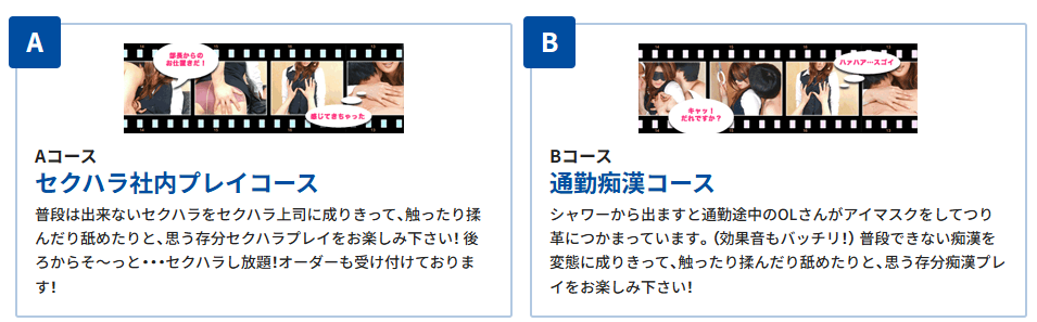 | イメクラ新入社員 | 45分 15,000円~ | 黒髪清楚な女の子が多数在籍 9種類のオフィスプレイ! |