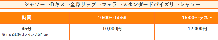 45分10,000円という破格の料金で遊べるので、初めての利用やとりあえず抜きたい時におすすめです。