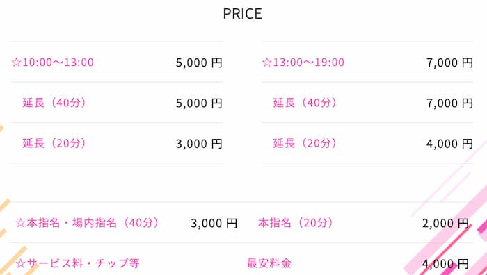 | 基本料金 | 40分 8,000円〜 |