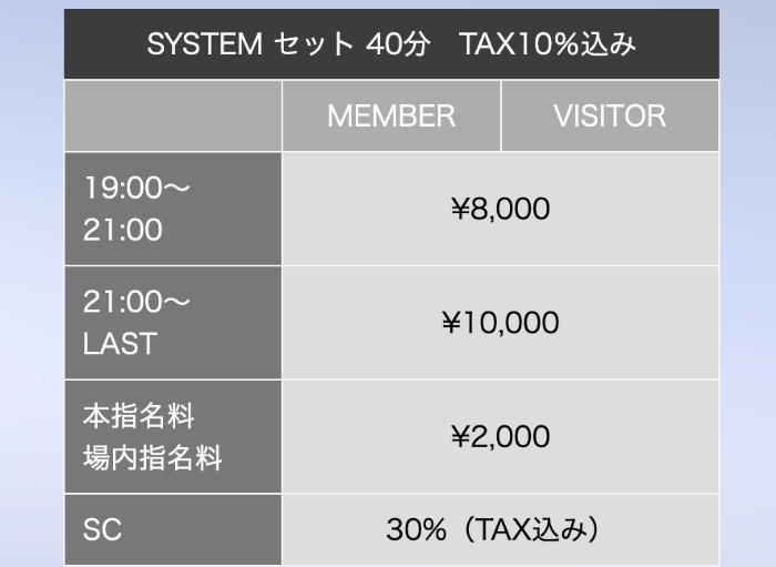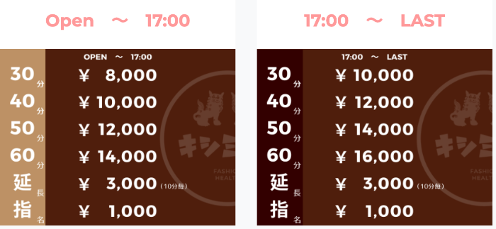 料金は40分8,000円からで、来店時間によって金額が異なります。