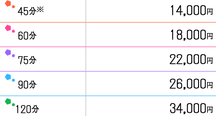 | 基本料金 | 45分 14,000円〜 |